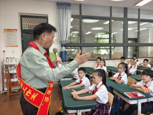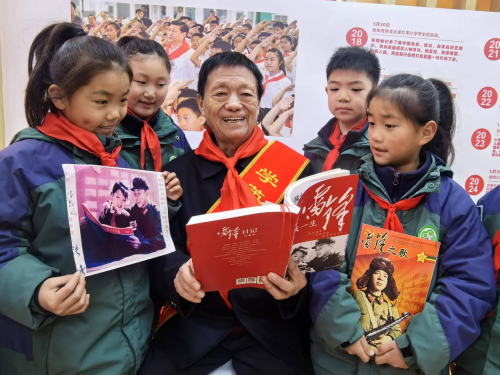 故事二: 关爱少年儿童学雷锋。雷锋对待工作像夏天一样火热,皇甫鸿昌以童心践行使命,将个人幸福与少先队事业紧密相连,成为红色教育领域的标志性人物。他为汶川地震灾区少年儿童寄去1000条鲜艳的红领巾,让孩子们戴上红领巾, 增强战胜自然灾害的信心和力量; 他参加开封市特殊教育学校聋哑儿童“无声”的入队宣誓仪式,亲自为聋哑儿童戴上红领巾, 勉励孩子们从小有志气做自强好少年; 他为红色安源矿工子弟学校、新密市八一红军小学等6所学校捐献“永远的红领巾”书屋,送去孩子们的“精神食粮”;他为红领巾讲解员赠送学雷锋学英雄书籍,鼓励他们讲好英雄故事,当好红色基因小传人 ; 他担任数十所学校英雄中队如“雷锋中队”“焦裕禄中队”“观杰中队”“杨靖宇中队”“孙占元中队”等校外少先队辅导员,和队员们一起学英雄......退休21年来,皇甫鸿昌把自己的13万多元的退休金,购买成少先队活动用书和红领巾, 赠送给革命老区、边远农村、地震灾区、校外少年宫的辅导员和少先队员, 用自己的实际行动“学雷锋做好事”,让雷锋精神发扬光大。
