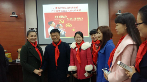 故事三: 创建英雄中队学雷锋。皇甫鸿昌在学雷锋活动实践中深切体会到,以英雄的名字命名,用英雄的精神引领,是少先队“英雄中队”彰显的丰富内涵,更是“英雄中队”所展现的独特魅力,使创建“英雄中队”活动成为点亮队员心灵的火炬。他先后指导省内外中小学创建了“林祥谦中队”“黄继光中队”“邱少元中队”“彭雪枫中队”“新四军小鬼班英雄中队”“雷锋中队”“刘洋中队”“史光柱中队”“黄大发中队”等200多支“英雄中队”; 他常年坚持研究“英雄中队”创建活动,他用残疾的双腿丈量出“英雄中队”的发展轨迹,用超常的毅力总结出“英雄中队”的经验成果。皇甫鸿昌深有感触地说: 每支“英雄中队”都有可歌可泣的英雄故事,我们要将每一支“英雄中队”所传承的精彩故事讲给少年儿童听,让孩子们从英雄的故事中读懂忠诚、学会担当、培养血性、激发梦想, 坚定当好红色接班人。