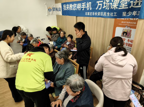 中国雷锋报河北讯(通讯员 陆江波)为切实破解老年群体智能技术应用难题,让“银发族”共享科技发展红利,近日,北京市贝壳公益基金会携手石家庄市长安区民生社工、青少年志愿服务队,组织志愿者走进石家庄市长安区国赫天著社区筑爱养老服务中心,以“我来教你用手机 万场课堂进社区”为主题,开展针对性科技助老公益活动,共有15名社区老人积极参与。