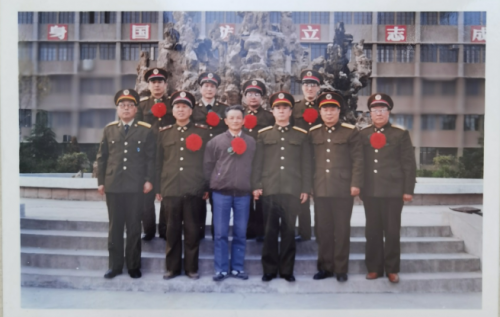 1994年1月,陈邦治(一排左三)荣获政府特殊津贴合影留念 参加开国大典 见证历史变迁 在人生的旅程中,总有一个个精彩的瞬间让人泪流满面,总有一个个美妙的场景让暖流涌遍全身,总有一股股坚强的力量催人奋进。对于陈邦治来说,亲历开国大典是他一生的荣耀。 当时的中央军委工程学校位于河北省张家口市,从武汉乘火车去要历时一周。同批从武汉参军的人员年龄参差不齐,有不少是高中生、在校大学生。作为为数不多的大学毕业生,在从武汉至张家口的列车上,陈邦治被选为学生代表,做一些组织协调工作。他对同学们关怀备至,得到了同学们的认可,为其参加开国大典奠定了坚实基础。 1949年9月中旬,陈邦治一行人顺利到达张家口市,刚好赶上学校挑选新生参加开国大典,同学们都推选他为观礼代表。一周后,陈邦治和其他代表一起来到北京,并入军队直属代表团参加开国大典。 “当时我入伍还不到一个月,军装没有发下来,穿的是借来的军装。”说起这件事,陈邦治忍俊不禁,“我个子小,又比较瘦,借来的军装穿在身上就像穿了个大袍子,大家笑得合不拢嘴。可我知道,大家不是在笑话我,只是看着我的样子很滑稽。虽然那时我也刚参军,但是能和大家打成一片,大家都非常喜欢我。” 尽管事情已经过去70多年,但是谈起参加开国大典,陈邦治依然格外激动,说话时不自觉地提高了嗓门。 1949年10月1日凌晨,北京的大街上人山人海。军队直属代表团从集结地徒步向天安门出发。为了防止走散,他们手挽着手,直到下午才走到天安门广场。 参加开国大典时,军队直属代表队被安排在天安门广场华表旁边,在这个位置能清清楚楚地看到主席台。 “我不仅看到了毛主席,还看到了朱总司令、周总理!”说到这里,陈邦治激动地拉住记者的手,眼中闪烁着泪花,“1949年10月1日下午3点,毛泽东主席在天安门城楼上宣告‘中华人民共和国中央人民政府成立了’,全场立刻爆发出热烈的掌声。当时,我心潮澎湃、热泪盈眶。整个过程,我目不转睛,就怕错过任何一个细节。” 从那一刻起,毛泽东主席的形象就深深地刻在了陈邦治的脑海里。“中国人民在中国共产党的领导下终于‘挺直了腰杆’,从此站起来了”。从小逃亡读书时,陈邦治就对全国解放充满渴望,而这次在天安门广场见证了这一伟大时刻,内心无比兴奋。他感慨:“以前我只听同学们说过解放区如何好,但是没有去过。参加开国大典,我才真切地感受到了解放的氛围,回去后迫不及待与大家分享,激动了好多天。” 夜幕下的天安门,人群并没有随着夜色的降临而散去。广场上依旧是人山人海,大家燃放烟花庆祝中华人民共和国的成立,声音嘶哑了还在欢呼,“毛主席万岁”“中国共产党万岁”“中华人民共和国万岁”的口号声震耳欲聋。那一晚,陈邦治所在的代表团也围成圆圈,载歌载舞共同庆祝,彻夜未眠,直到天亮才返回。
