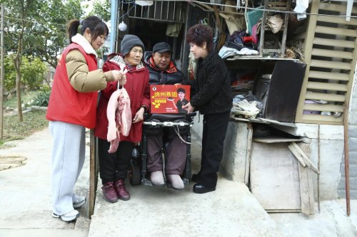 在涪城区城厢街道建国门社区,党委书记蒲陶军精心安排,居委会副主任刘应陪同着被誉为“四川好人”的绵州燕姐来到了这里。只见绵州燕姐怀揣着满满的爱心,亲手将一份份精心准备的礼物——香肠、水果、礼品盒以及新鲜猪肉,送到每一位环卫工人和老人的手中。那一个个礼包,承载着的不仅仅是物质上的关怀,更是绵州燕姐对他们的敬重与关爱。