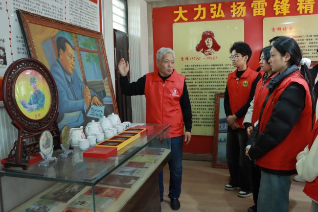 本报河南讯(记者 李全胜 通讯员 李天顺 王玺凯)阳春布德泽,万物生光辉。三月不仅是大自然苏醒的季节,更是精神传承的节点。3月15日下午,河南大学法学院的学子们怀揣着对榜样的敬仰,踏上了一段涤荡心灵的旅程。他们走进开封雷锋纪念馆,在那些泛黄的相纸与静默的实物之间,与一个不朽的灵魂展开跨越时空的对话。 一馆珍藏:一个人的梦想与万千人的仰望 踏入开封纪念馆,肃穆之气扑面而来。首先迎接学子们的是馆长王业文——一个用半生践行雷锋精神的普通人。他目光如炬,言语朴实,向大家娓娓道来这座纪念馆的由来。 王业文馆长并非巨贾,却做了一件伟大的事。据悉,他倾尽一生积蓄,甚至四处打工、节衣缩食,只为建立这座可以对公众免费开放的精神殿堂。从古玩市场的尘埃中淘来泛黄的书籍,从旧货摊的角落寻回锈蚀的徽章,他将散落天涯的“雷锋记忆”一片片拾起,聚拢成如今这占地虽不大、精神容量却浩如烟海的展馆。他本人亦因这份执着的善举,被评为开封市学雷锋标兵,其事迹感动了无数人,被誉为“当代雷锋”的郭明义也曾给予他高度赞扬。 这里不仅是藏品的陈列,更是一个理想主义者的精神自传。同学们静立倾听,眼中满是敬意。