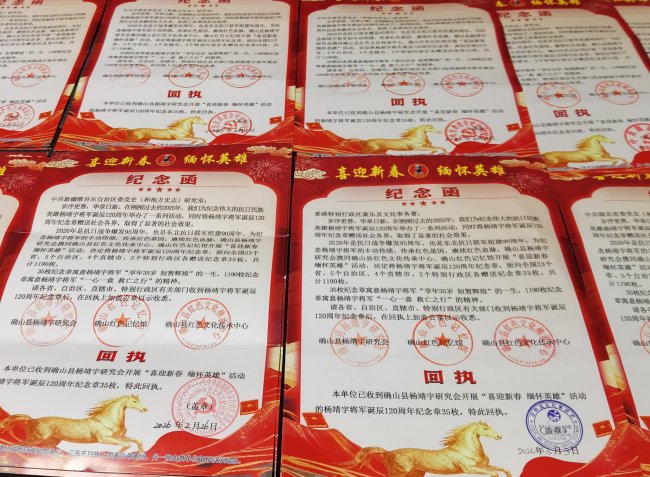 本报河南讯(记者 李全胜 通讯员 李鹏飞)3月21日,随着香港康乐及文化事务署回执公函顺利抵达,由河南省确山县杨靖宇研究会、确山县红色文化传承中心、确山红色记忆馆联合主办的“喜迎新春 缅怀英雄”主题纪念活动圆满落幕。小小纪念章跨越千里,将抗日民族英雄杨靖宇的赤胆忠心与家国情怀,传递到祖国大江南北。
