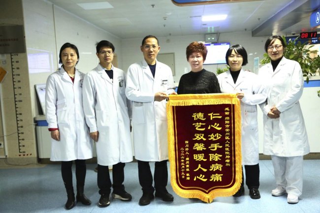 住院期间,院长孙军特意前往病房探望燕姐,关切询问她的病情与治疗进展,这份暖心举动让燕姐深受感动。出院之际,心怀感恩的燕姐精心定制了一面锦旗,郑重地送到内四科医护人员手中,以此向全体医护人员表达最诚挚的谢意。