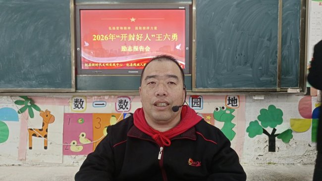 本报河南讯(记者 李全胜)3月26日下午,由杞县新时代文明实践中心、杞县残疾人联合会、高阳镇人民政府主办的弘扬雷锋精神 汲取榜样力量——开封好人王六勇励志报告会,在高阳镇金村希望小学举行。以榜样育人,以励志润心,让雷锋精神在校园落地生根。