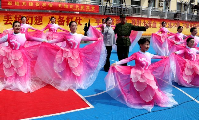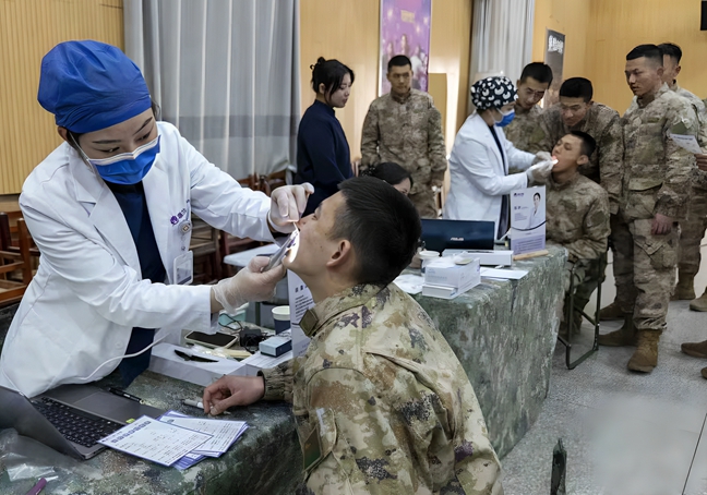 如小合唱《学雷锋好榜样》、独唱《愚公移山》;朗诵《永恒的歌谣》、《军人月亮》、《军人本色》;《哨所旁的雪莲》、《致敬英雄》;大合唱《五星红旗》等节目深受官兵好评;特别是情景剧《我是解放军》一下把氛围推向高潮,吸引官兵们目不转睛,顿时响起阵阵掌声.......同时,现场还举行健康义诊、理发等系列志愿服务活动;深受官兵们喜欢。