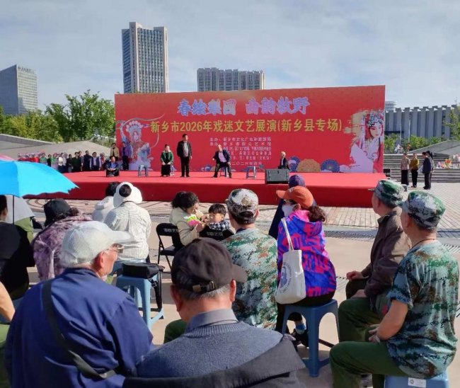 本报河南讯(记者 曹璐璐 通讯员 张先立)4月11日下午3时,新乡市2026年戏迷文艺展演(新乡县专场)于新乡市人民政府广场璀璨登场。这场盛会由新乡市文化广电和旅游局倾情主办,市群艺馆与新乡县文旅局、新乡县戏迷协会联袂承办。十二组经典节目荟萃一堂,由明星擂主与戏迷朋友倾情演绎,完美诠释了传统戏曲文化的独特魅力。