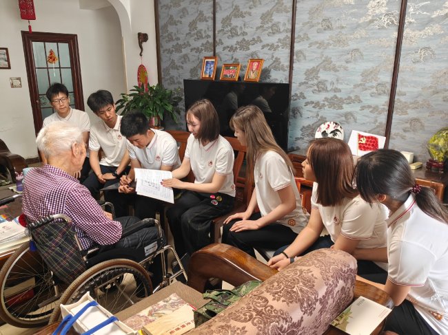 在何胜老人家中,同学们围坐身旁,与老兵亲切交谈,并送上手写感谢信,向老一辈革命家致以最崇高的敬意。大家纷纷表示,正是先辈们舍生忘死、披荆斩棘的付出,才换来今日国泰民安、幸福安康的生活,对老人多次执行重要任务、坚守革命一线的经历满怀崇敬。