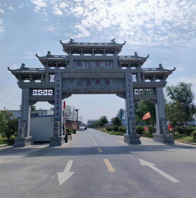 走到长垣市孟岗镇尚小寨村,村西口,是一座高大的青石牌坊,古色古香。
