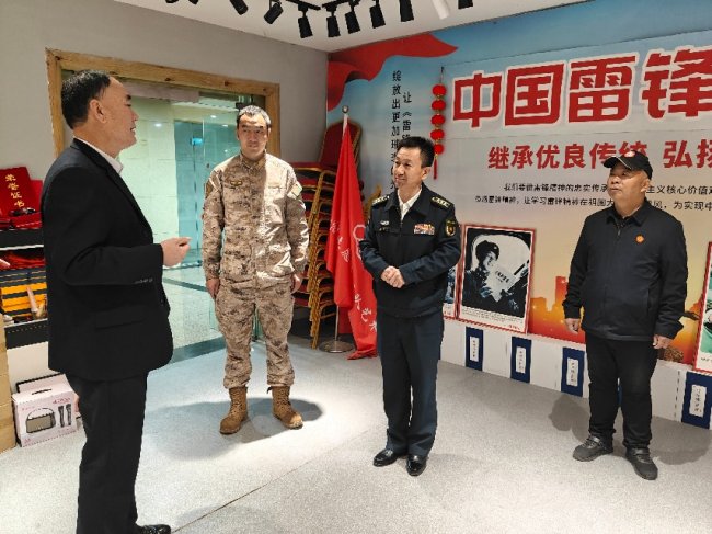 宋殿胜一行先后参观了雷锋主题文化展区、红色藏品等,认真聆听雷锋事迹讲解,仔细观看雷锋主题文创作品及红色历史资料,深刻感悟雷锋精神的时代内涵。参观过程中,双方重点围绕老干部红色事迹宣传、军地红色文化共建等内容展开深入交流,就挖掘老干部红色故事、传承红色基因等工作达成共识。
